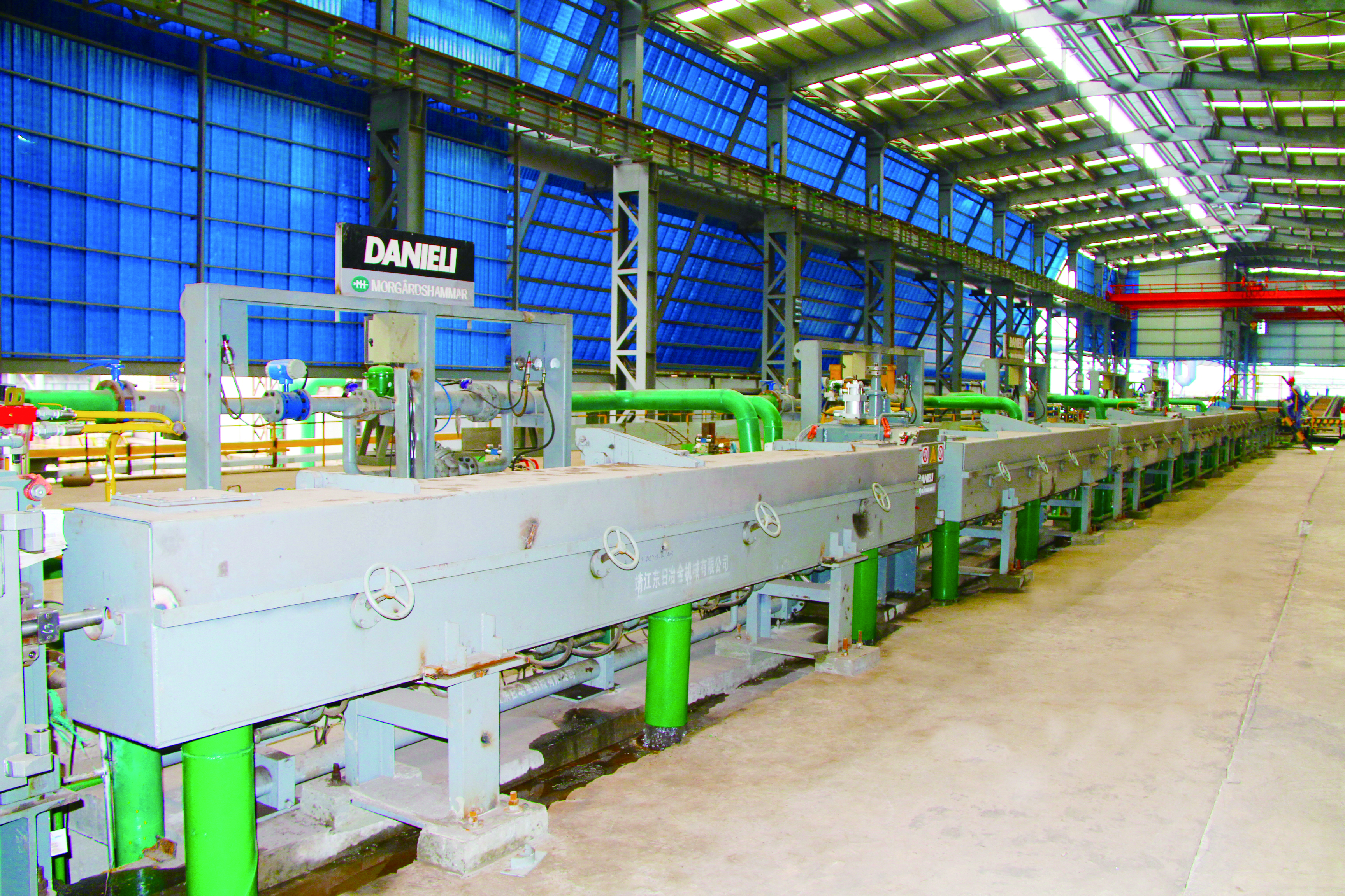軋鋼廠現(xiàn)有生產(chǎn)設(shè)備,整體裝機(jī)水平在國內(nèi)同類軋機(jī)中處于領(lǐng)先地位,線材采用先進(jìn)工藝引進(jìn)意大利達(dá)涅利公司制造的精軋懸臂式 45°軋機(jī)八臺(tái)、懸臂式 45°減定徑三臺(tái)、吐絲機(jī)一套,德國西門子制造打捆裝置二套等;帶鋼廠采用自動(dòng)打包機(jī)及自動(dòng)噴號(hào)機(jī)械手等裝置,使全線實(shí)現(xiàn)自動(dòng)化控制,從而提高全線生產(chǎn)及管理水平。產(chǎn)品品種多,主導(dǎo)產(chǎn)品有棒材、線材、熱軋中寬帶鋼三大類,棒材可軋制牌號(hào)HRB400、HRB500、HRB400E、HRB500E、HRB600,Φ12mm、Φ14mm、Φ16mm、Φ18mm、Φ20mm、Φ22mm、Φ25mm、Φ28mm、Φ32mm、Φ36mm、Φ40mm、Φ50mm等12個(gè)規(guī)格鋼筋混凝土用熱軋帶肋鋼筋。線材可以采用普通熱軋工藝、超細(xì)晶粒軋制工藝生產(chǎn)規(guī)格Φ6mm、Φ8mm、Φ10mm、Φ12mm,牌號(hào)Q195、HPB300 及 HRB400、HRB500、HRB600、HRB400E、HRB500E 鋼筋混凝土用熱軋光圓鋼筋及鋼筋混凝土用熱軋帶肋鋼筋。帶鋼生產(chǎn)品種為碳素結(jié)構(gòu)鋼及優(yōu)質(zhì)碳素結(jié)構(gòu)鋼 Q195、 Q235、Q355、08A、10、20、45、45Mn 及特種鋼,生產(chǎn)厚度:1.2~12.7mm 、寬度:500~850mm 。全系列高性能抗震鋼筋,碳素結(jié)構(gòu)鋼及優(yōu)質(zhì)碳素結(jié)構(gòu)鋼、焊接用鋼、拉絲鋼等系列工業(yè)線材品種鋼等中寬帶鋼產(chǎn)品。